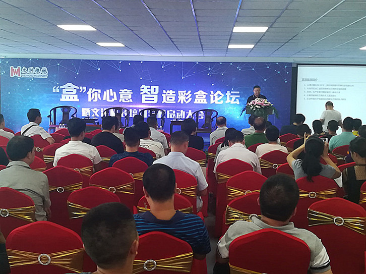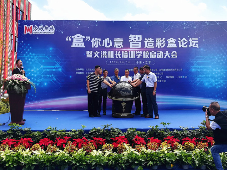 8月28日,位于江蘇省南通蘇通科技產(chǎn)業(yè)園的文洪機(jī)械(江蘇)廠區(qū)內(nèi),藍(lán)天白云,彩旗飄展,來(lái)自全國(guó)有關(guān)協(xié)會(huì)領(lǐng)導(dǎo)、業(yè)內(nèi)專家、包裝印刷企業(yè)精英人士,共同參加由文洪印刷機(jī)械股份有限公司主辦,深圳嘉洛智能科技有限公司協(xié)辦的“盒”你心意 智造彩盒論壇暨文洪機(jī)長(zhǎng)培訓(xùn)學(xué)校啟動(dòng)大會(huì)。