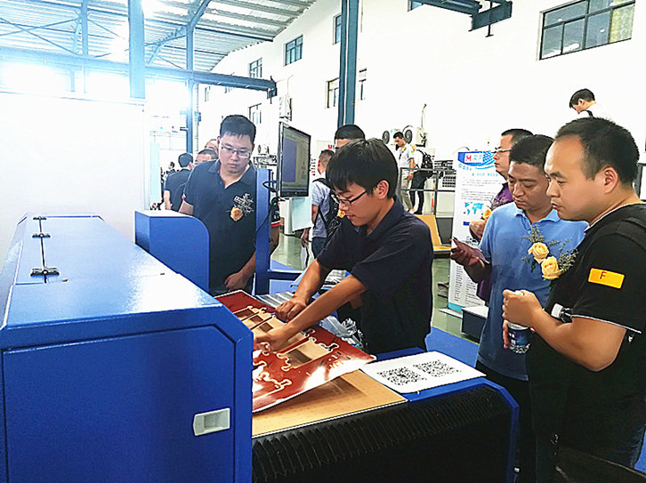 在上午的“智”造彩盒過(guò)程演示參觀現(xiàn)場(chǎng),嘉洛展位上共展出了激光刀模切割機(jī)、精密電腦自動(dòng)彎刀機(jī)和新型底模機(jī)三臺(tái)主要機(jī)器設(shè)備,在現(xiàn)場(chǎng)工作人員的操作演示下,嘉洛設(shè)備在制作刀模和底模的精湛技術(shù)工藝方面,吸引了大量參觀人士駐足觀摩。由嘉洛本次活動(dòng)傾力奉獻(xiàn)的樹脂底模,更是成為本次活動(dòng)最大的亮點(diǎn)之一,備受矚目。